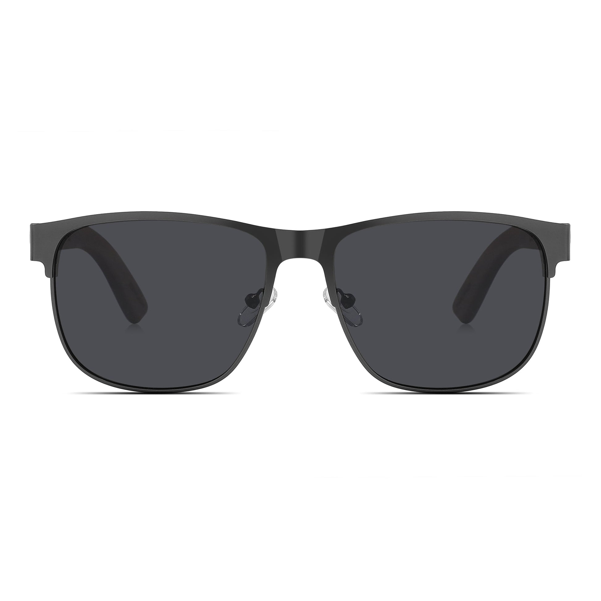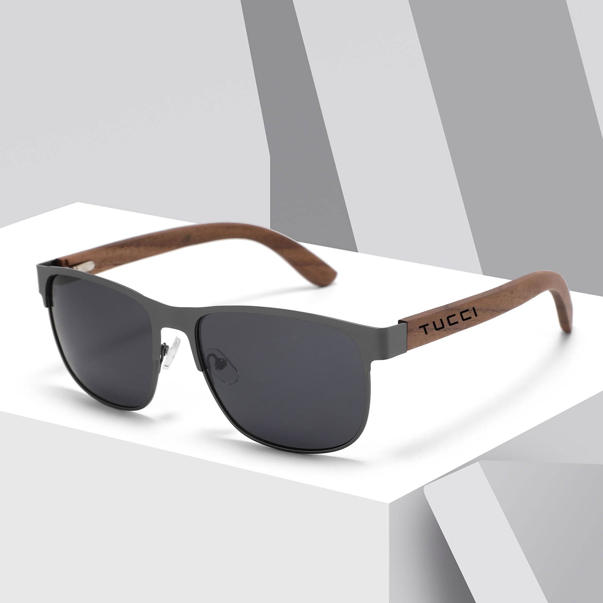 TUCCI Gun color Stainless Steel Frame Walnut Wood Sunglasses With Dark Polarized Lenses for Men