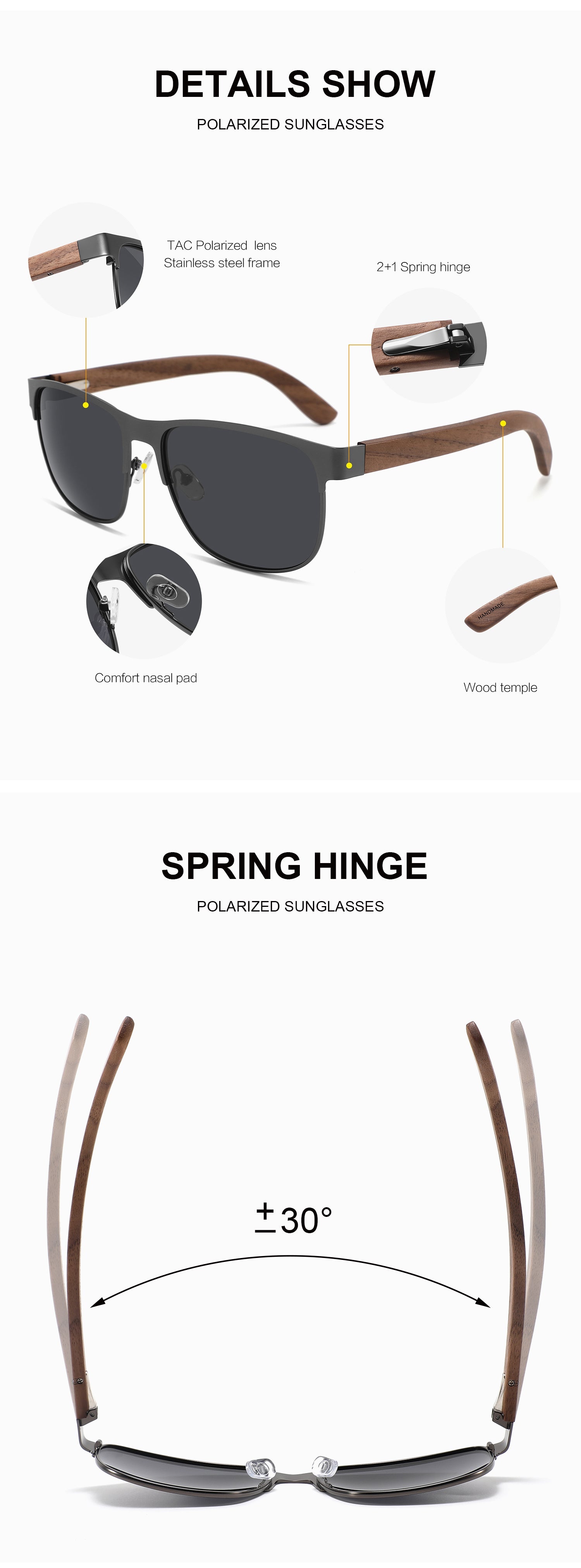 - Frame material: Metal Frame and Wood Temples