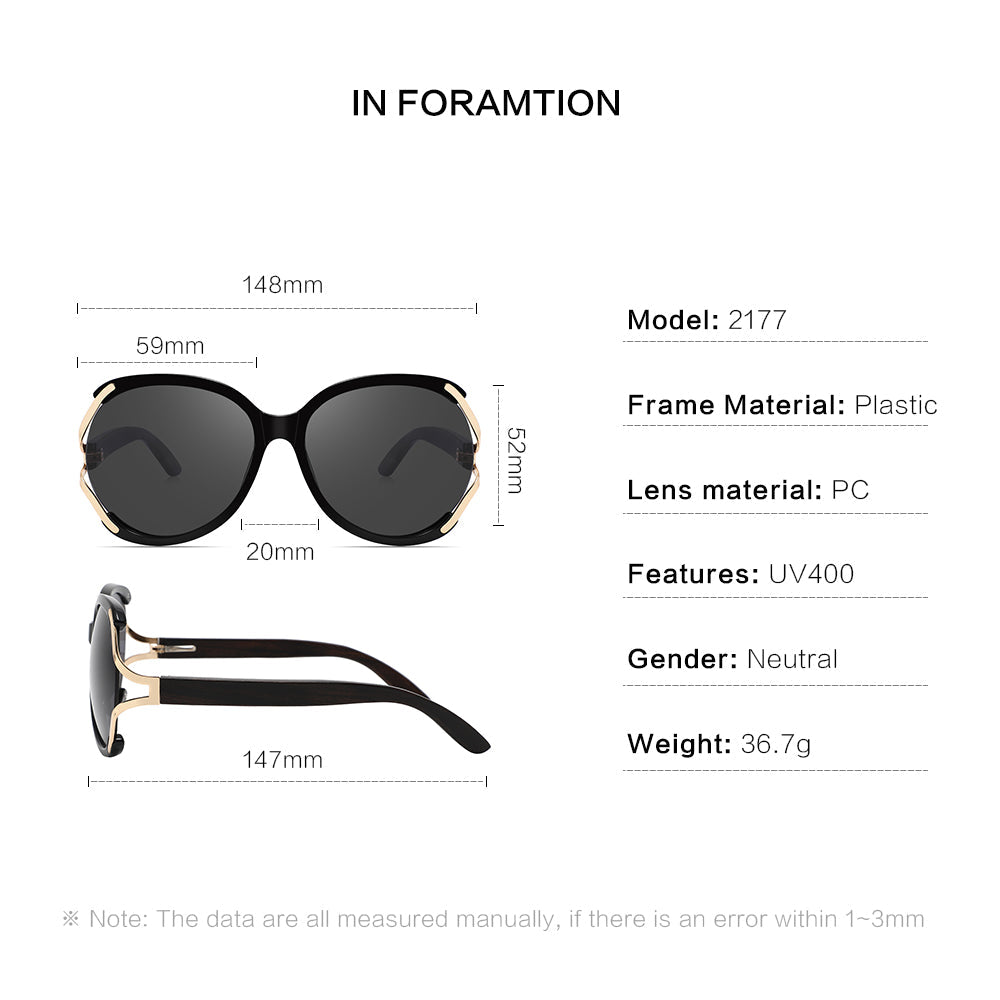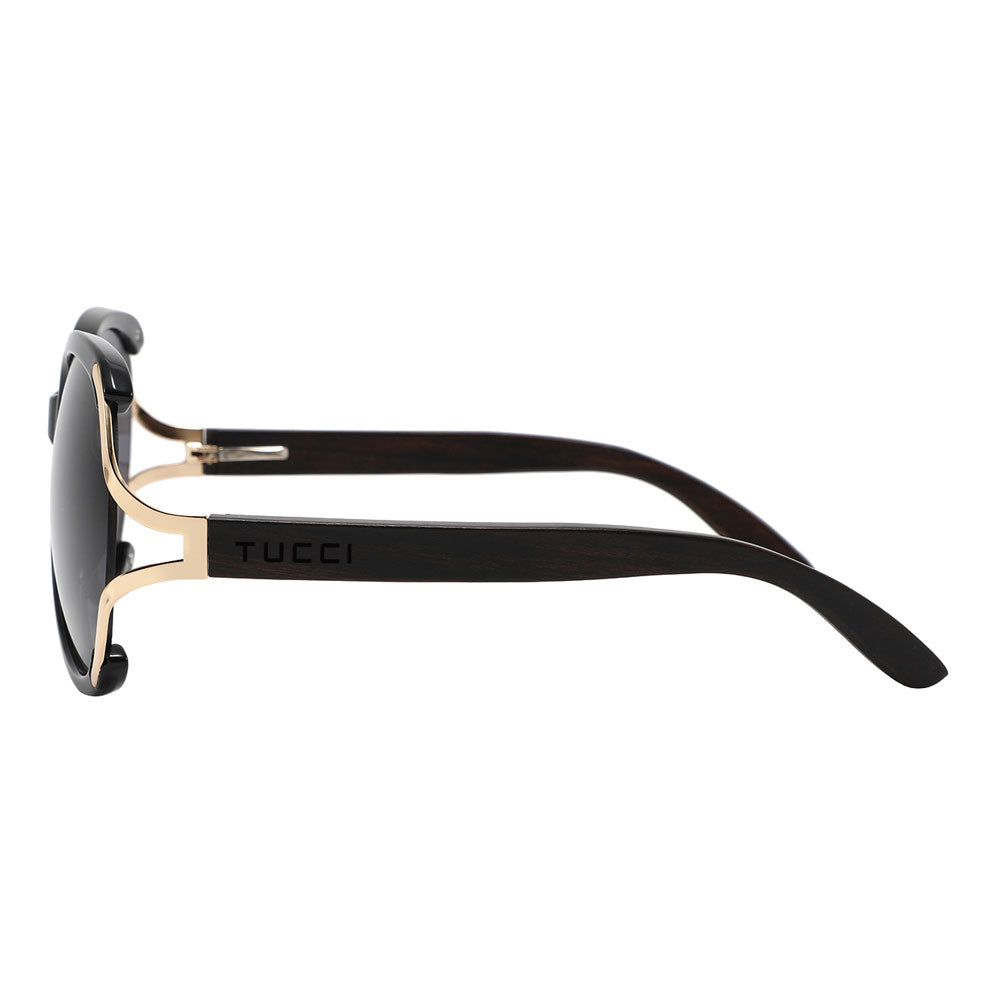 TUCCI Eco Ebony Wood Sunglasses Dark Polycarbonate Lenses for Women Spring Hinge for Most Size Faces