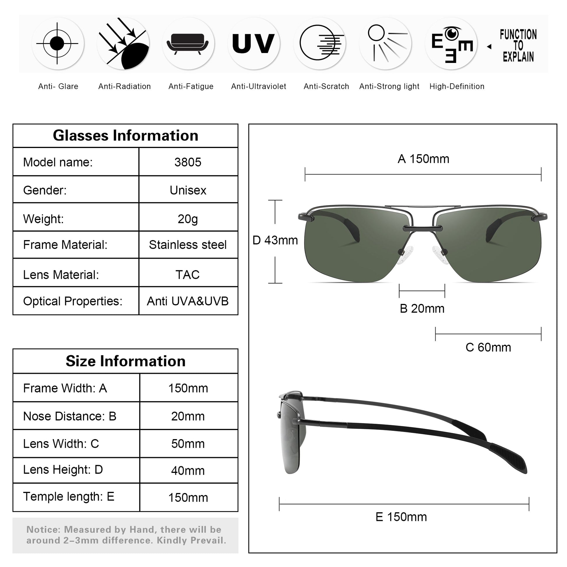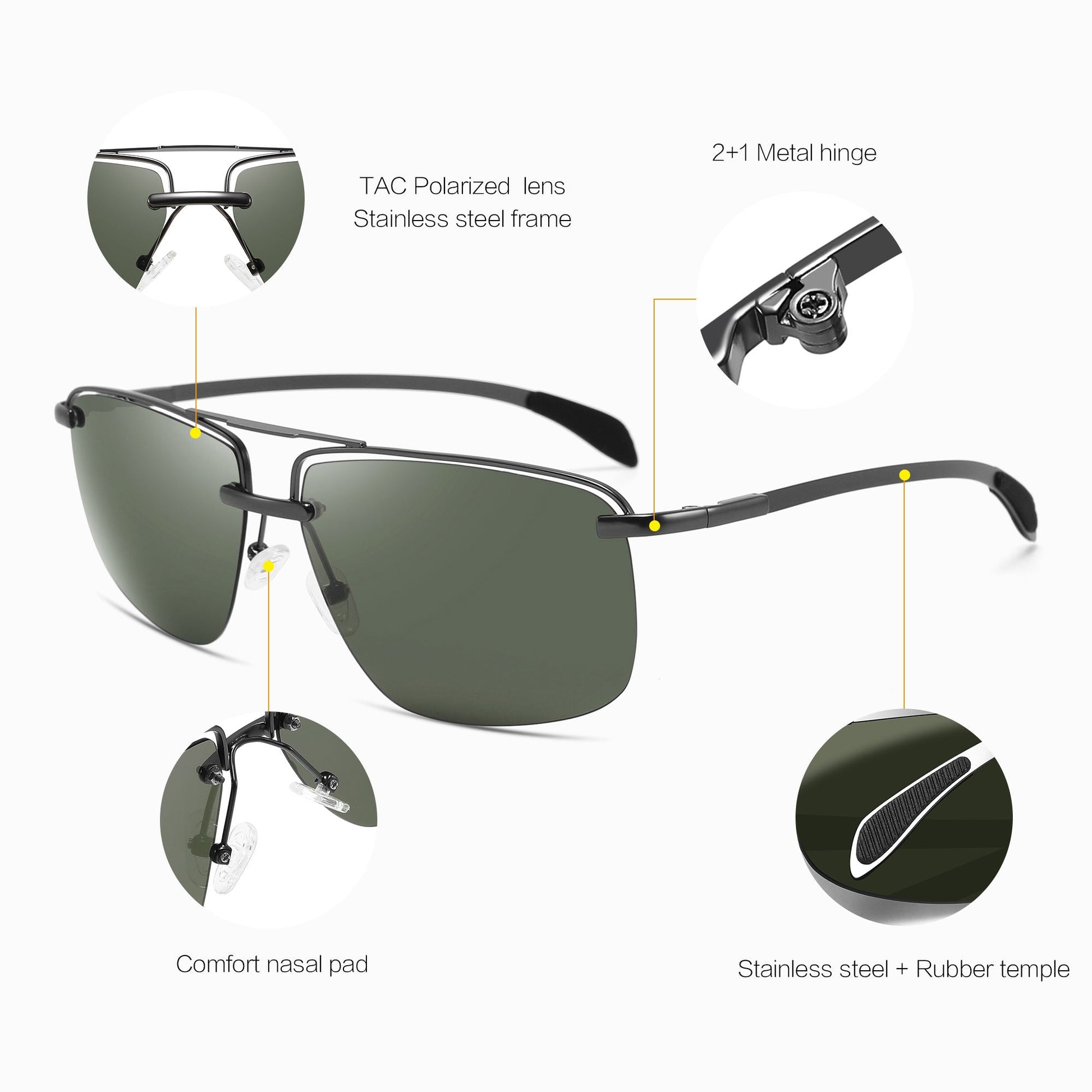 TUCCI OutdoorMetal Sunglasses G15 Dark Green Polarized Lenses for Men Rubber Tips